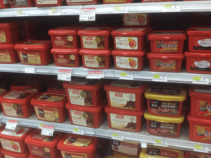 Korean condiments generally fall into two classes, fermented or non-fermented. Fermented includes red pepper pastes, fermented bean pastes, vinegars, soy sauce, etc. Non fermented include things like oils, green onions, garlic, fresh or dried and ground red chilies, and more.