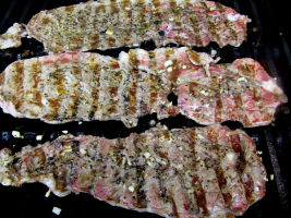 Grill (or fry) over high heat until the meat reaches your desired level of "Done". A light char is desirable.