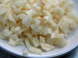 Cut the green from the green onions then fine chop (mince) the white portion. Reserve the green for the dipping sauce.